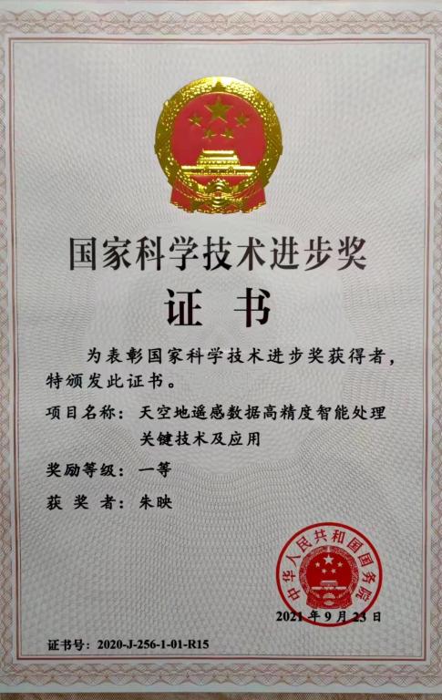 公司航天图像处理先进技术科研创新团队朱映老师作为主要参与人完成的研究成果“天空地遥感数据高精度智能处理关键技术及应用”获国家科学技术进步奖一等奖。该项目由武汉大学李德仁院士、王密教授团队牵头完成,围绕我国高分遥感系统“好用”和“用好”的目标,首创卫星遥感全球无地面控制高精度处理和数据挖掘的理论与方法体系,打破空地遥感高精度定位定姿核心装备和遥感信息实时智能服务系统核心技术封锁,实现高精度天空地遥感系统核心装备和技术自主可控,为国产卫星遥感影像自给率从15%提高到85%以上做出重要贡献,首次实现境外1:5万无地面控制点测图,推动了我国卫星遥感测图从有控制到无控制的行业智能化变革。